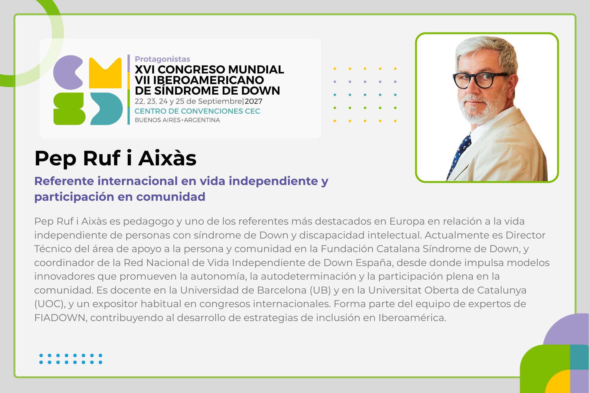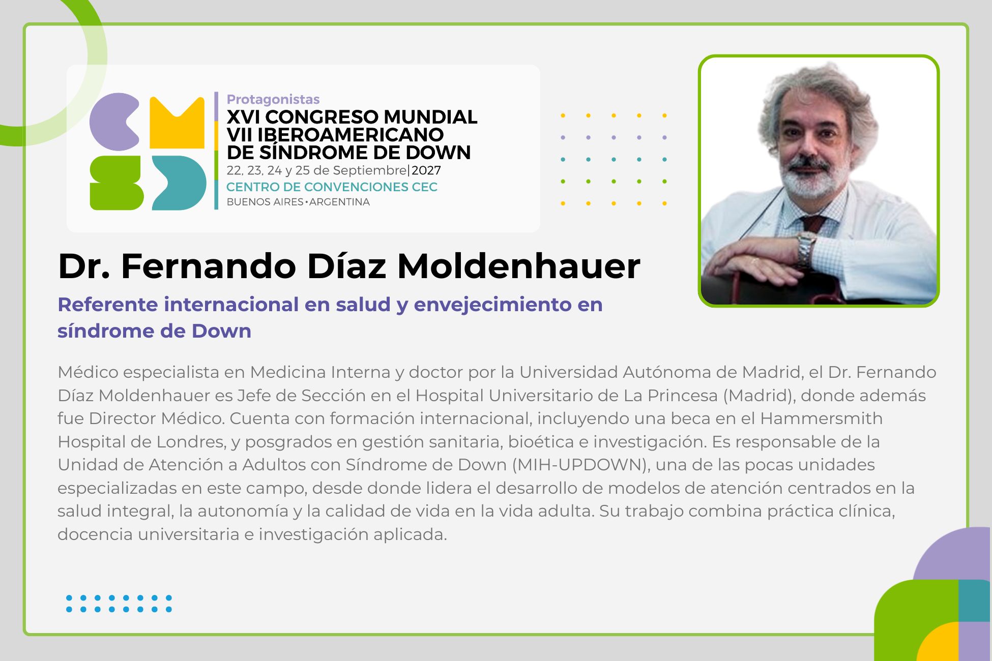 Para información de Inscripciones: inscripciones@worldcongressds2027.org
